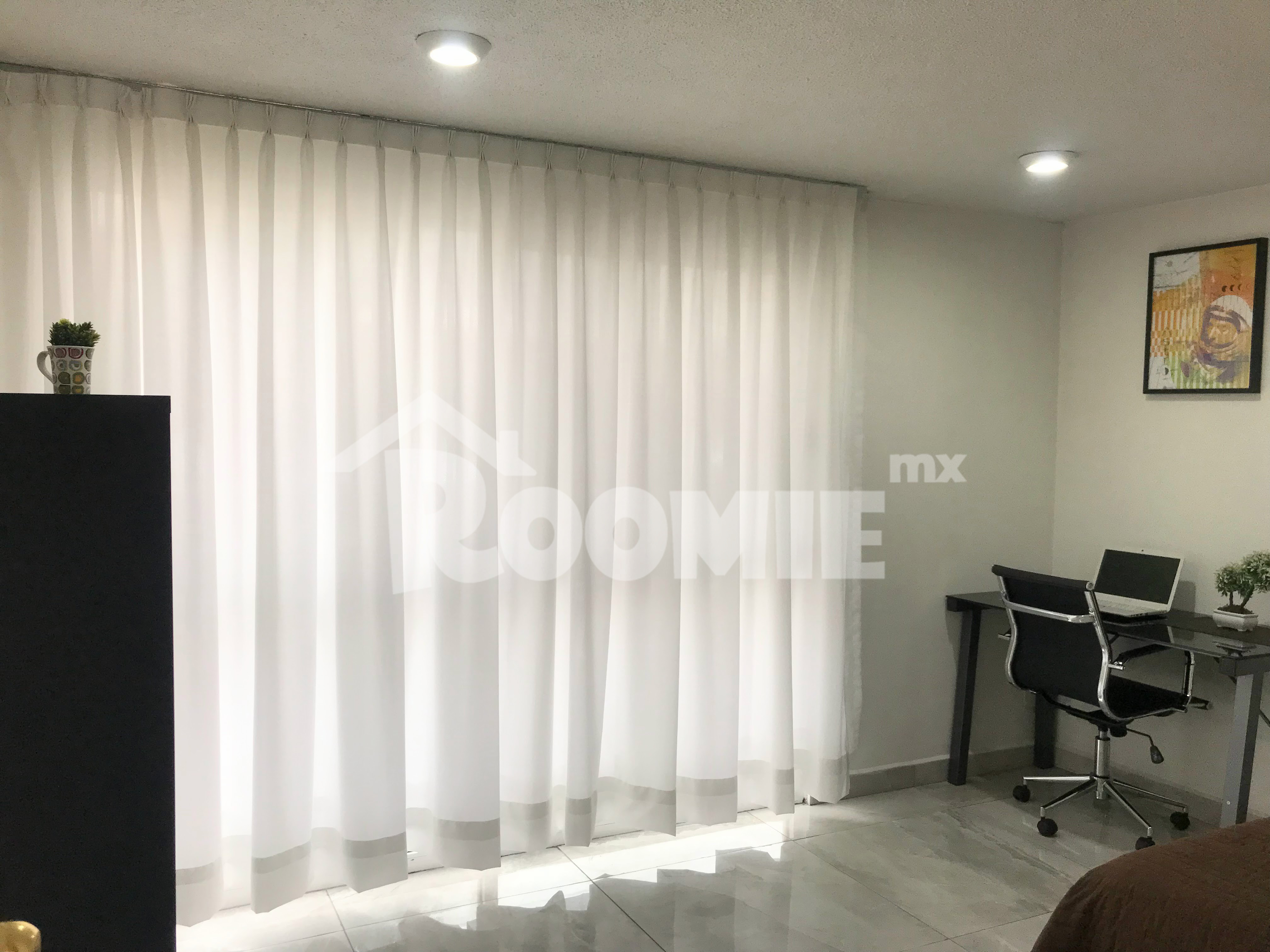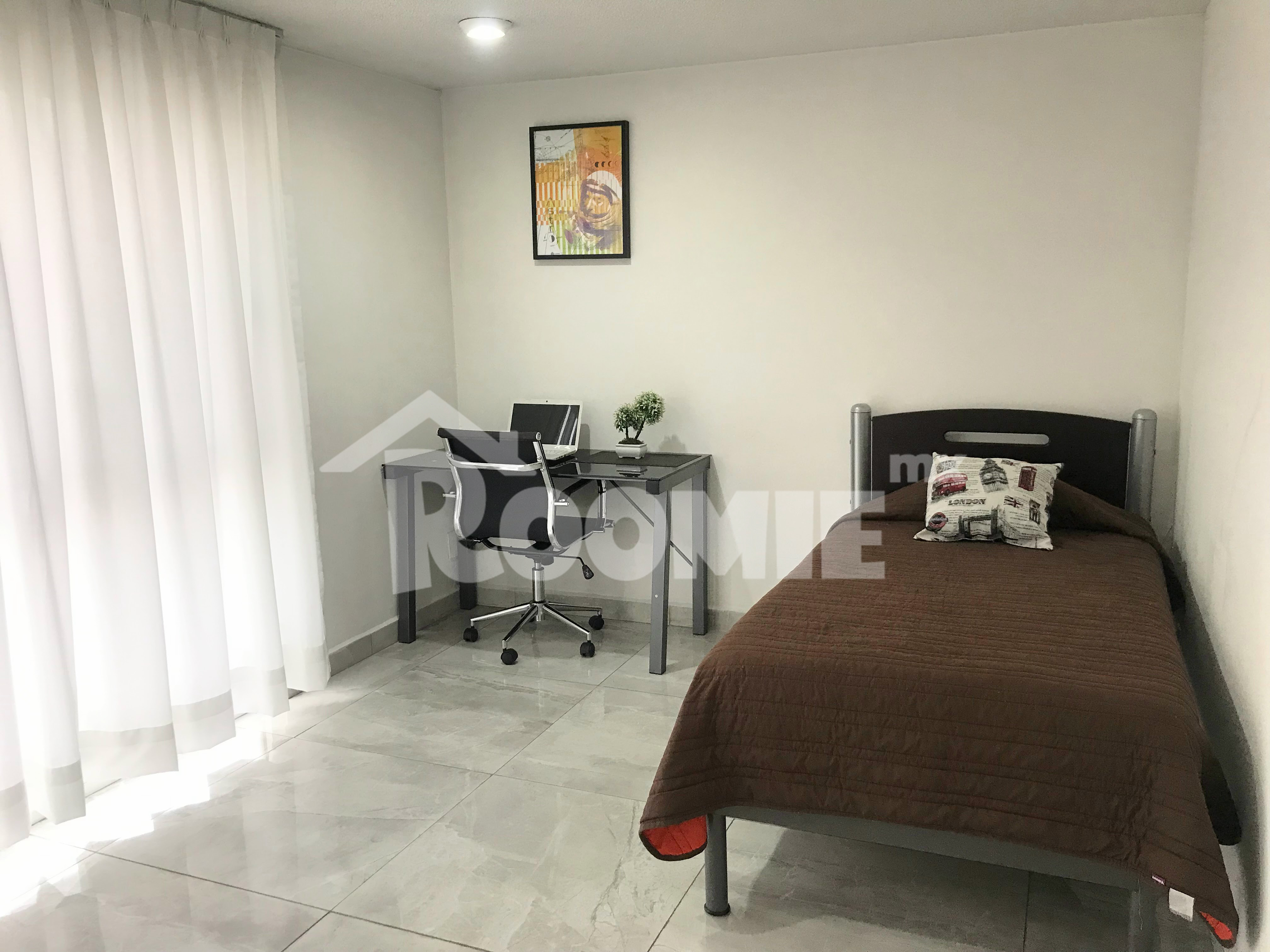 Además, el condominio donde se ubica la habitación tiene todo lo que necesitas para disfrutar al máximo tu estancia, podrás disfrutar de un salón de eventos, cancha de squash, ludoteca y excelentes áreas verdes, ideales para caminar y disfrutar del aire fresco. El condominio cuenta con elevadores en sus edificios al igual que áreas de tendido, tiene estacionamientos, administración condominal y casetas de vigilancia las 24 horas del día los 7 días de la semana para que te sientas completamente seguro.