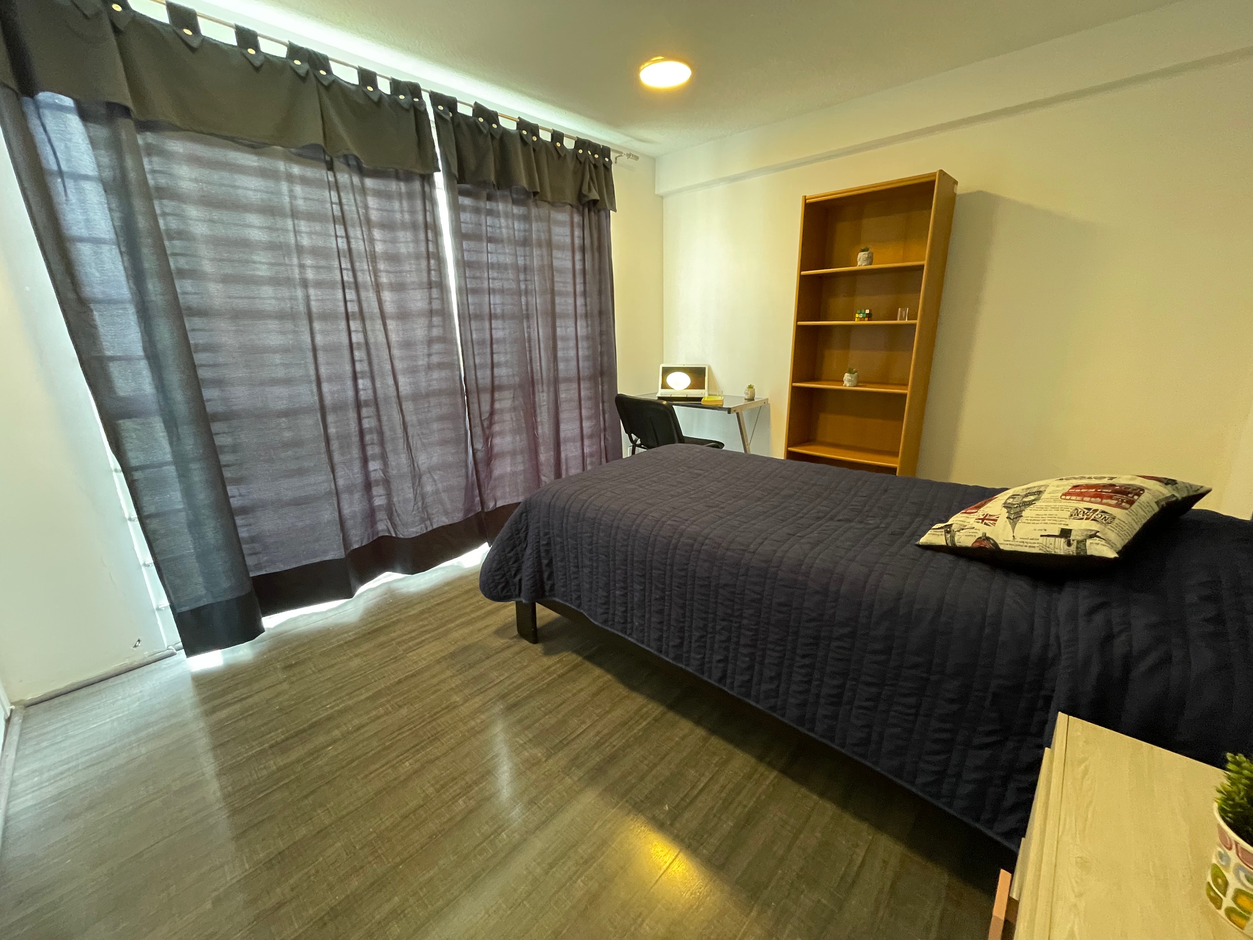 Además, el condominio donde se ubica la habitación tiene todo lo que necesitas para disfrutar al máximo tu estancia, podrás disfrutar de un salón de eventos, cancha de squash, ludoteca y excelentes áreas verdes, ideales para caminar y disfrutar del aire fresco. El condominio cuenta con elevadores en sus edificios al igual que áreas de tendido, tiene estacionamientos, administración condominal y casetas de vigilancia las 24 horas del día los 7 días de la semana para que te sientas completamente seguro.